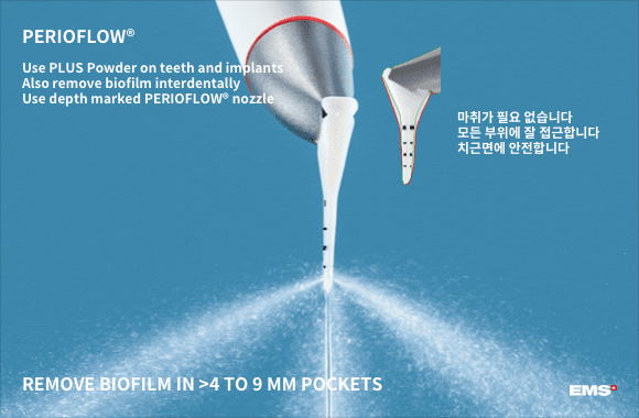 AIRFLOW는 파우더를 이용하여 치태, 착색 및 치석을 효율적으로 제거하고 치은연하(잇몸안)에서 초음파스케일러등의 필요성을 줄이는 잇몸관리