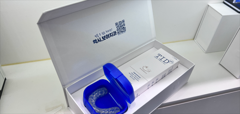 이갈이장치 라고도 하며 턱관절 질환이 있거나 이갈이 이악물기 습관이 있을 때 사용하는 장치입니다.
